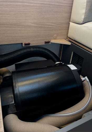 I år har vi valt värmesystemet Combi D 6E Truma®. Till skillnad från andra värmare av samma märke kräver denna ingen gas, då det är ett hybridsystem som drivs med el och diesel. Detta värmesystem erbjuder tre fördelar som kommer att förbättra din komfort ombord: